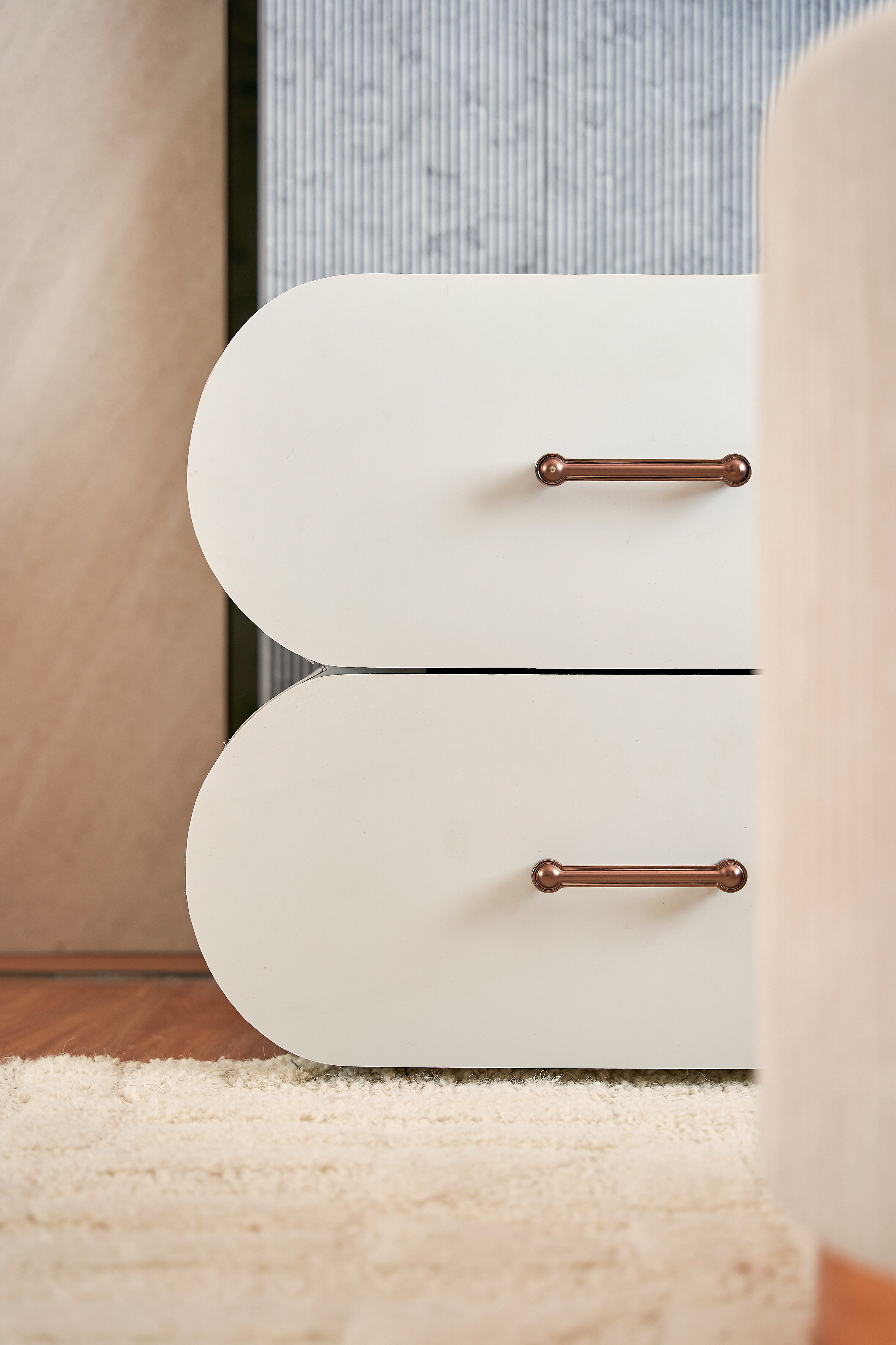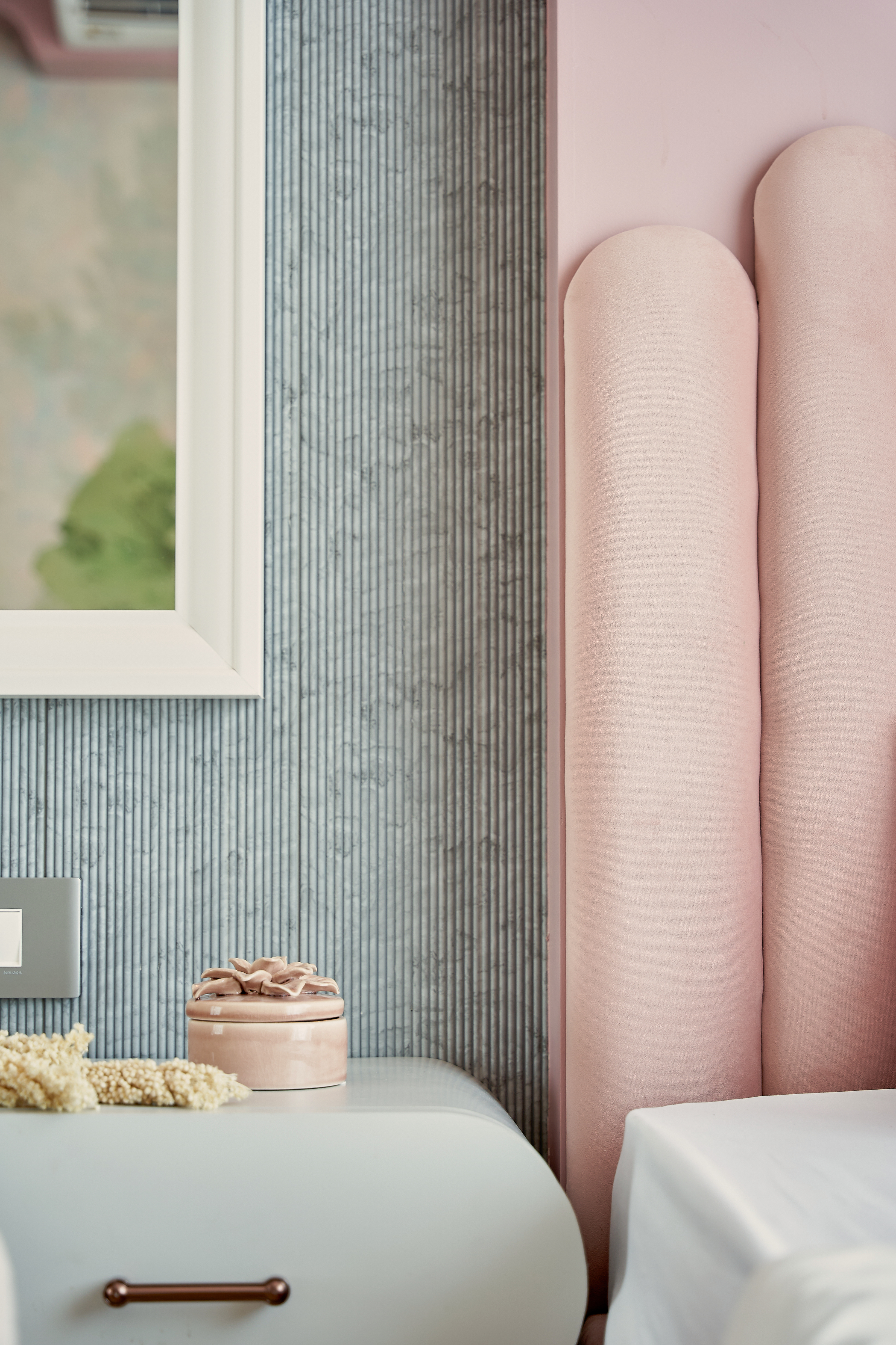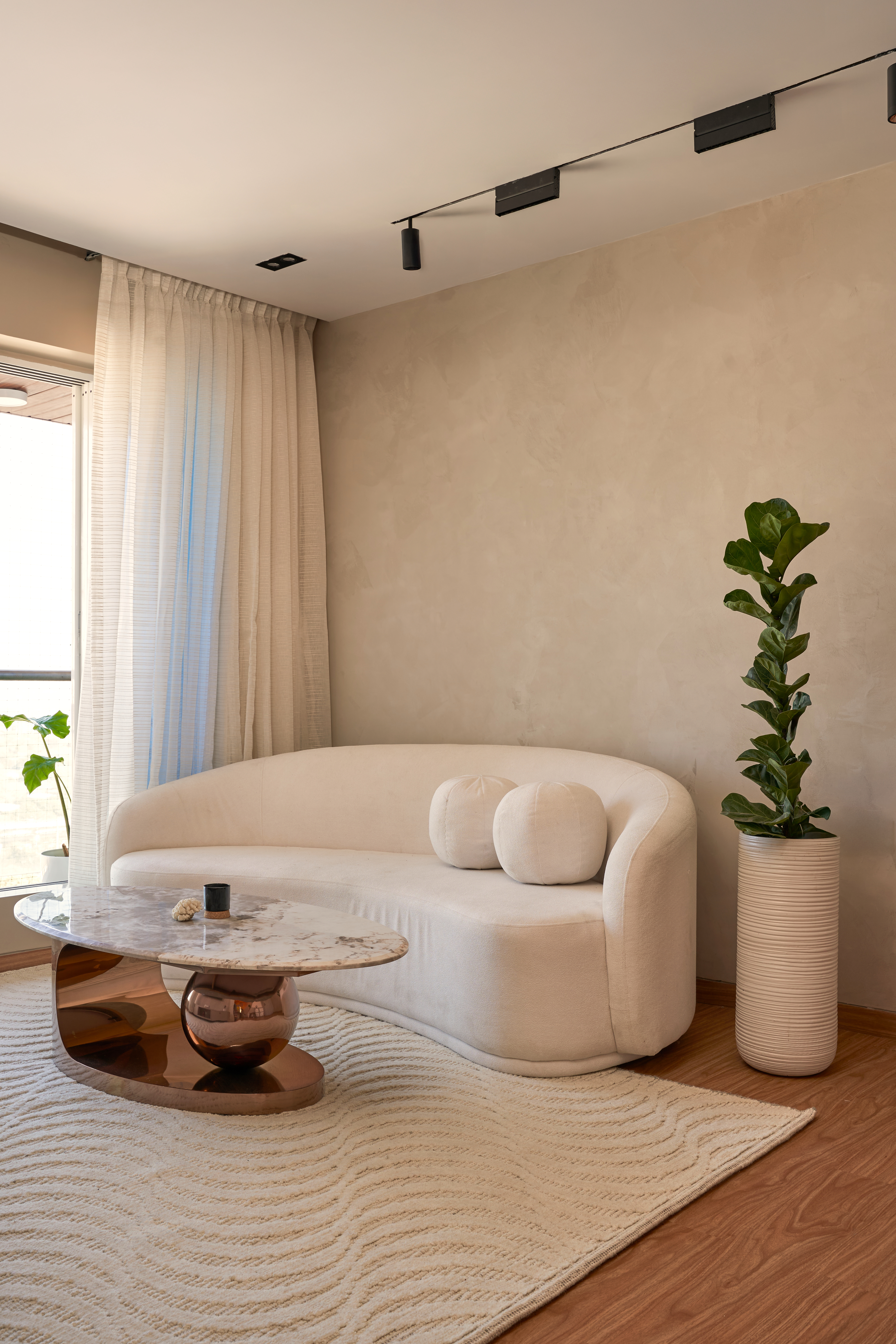 A light-filled haven where soft pastels and gentle forms shape a soothing, modern living experience.